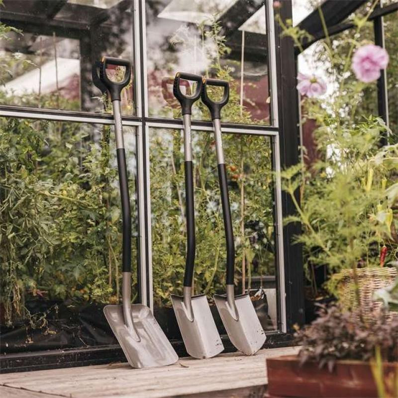 A FISKARS ergonomikus hegyes ásóval a munkát természetes tartásban végezheti. A hosszú nyél és a 40°-os emelési szög minimálisra csökkenti a hát és vállizomzat terhelését, a markolat természetes tartást biztosít a kéznek.