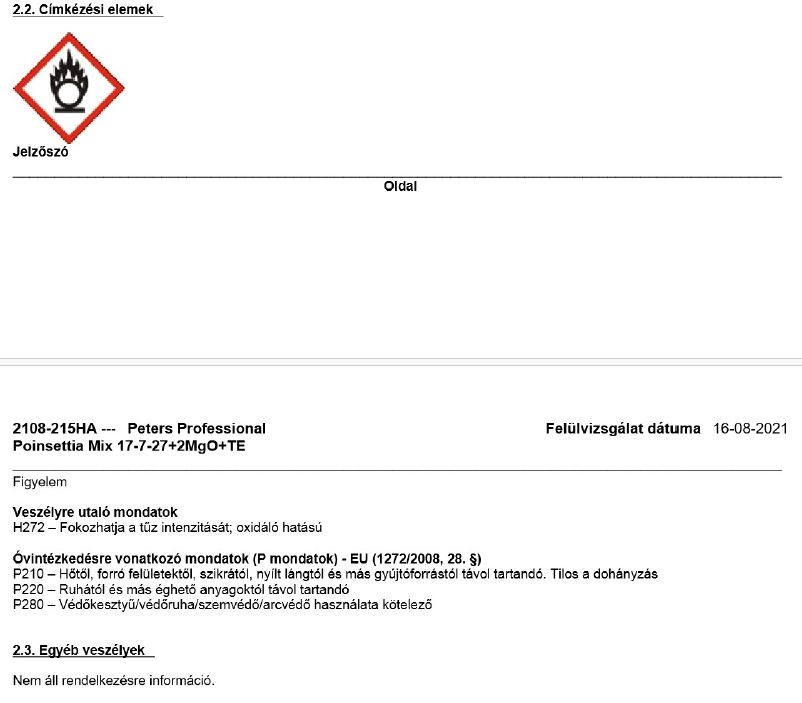 A Peters Professional 17-07-27 (Poinsettia Mix) öntözőműtrágyát kifejezetten mikulásvirág nevelésére fejlesztették ki, amellyel teljes mértékben kielégíthető ennek a növényfajnak a különleges tápanyag-igénye. A Peters Professional17+07+27(Poinsettia Mix) változó összetételben tartalmaz bórt, cinket és molibdént, amivel egészséges és kiváló minőségű árunövény nevelhető. Nagy mennyiségben tartalmaz nitrát-nitrogént. Összetétel: 17-7-27+2MgO+TE Előnyei: " NPK-tartalom mellett magnéziumot és mikroelemeket tartalmaz " Magas hatóanyag-tisztaság, vivőanyag mentes " Gyors növényi válasz reakció " Tőzeg alapú földkeverékben nevelt növények számára alkalmas " Egyedülálló M-77 kelátcsomagot tartalmaz " 100 %-ban vízoldható, apró szemcsékből áll Használati utasítás: A Peters Professional17+07+27(Poinsettia Mix) változó összetételben tartalmaz bórt, cinket és molibdént, amivel egészséges és kiváló minőségű árunövény nevelhető. Nagy mennyiségben tartalmaz nitrát-nitrogént. A Peters Professional 17+07+27(Poinsettia Mix) Peters Excel műtrágyákkal nem keverhető. A tökéletes oldódás érdekében használat előtt 1-2 órával készítse el a törzsoldatot, használjon langyos vizet, és alaposan keverje el benne a műtrágyát. A felnyitott zsákot jól zárja le, és tárolja száraz helyen. Egyedi felhasználási igény esetén keresse fel az Everris szaktanácsadóját. Mivel a felhasználási körülmények eltérőek, és az Everris nem tudja ellenőrizni Az alkalmazási javaslat pontos betartását, az Everris nem vállal felelősséget az esetleges károkért. Javasolt általános dózis: " Folyamatos tápoldatozás: 0,5 - 1,5 g/liter " Szakaszos tápoldatozás (pl. heti 1 alkalom): 0,8 - 2,0 g/liter Figyelmeztetés Mivel a felhasználás körülményei a gyártótól függetlenek, az alkalmazás során elkövetett hibák által okozott kárért a gyártót felelősség nem terheli. Amennyiben a termékkel kapcsolatosan további kérdése lenne, kérjük, hívjon bennünket. Növényvédelmi szaktanácsadás: +36304139252 Növényvédő szer webáruházunkban számos további termék közül válogathat.