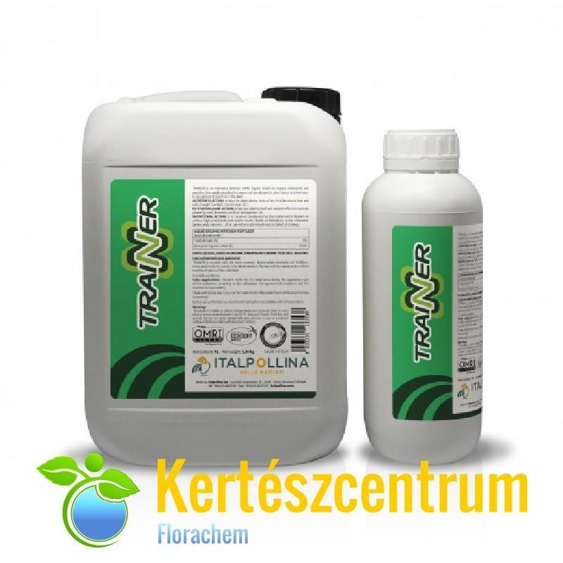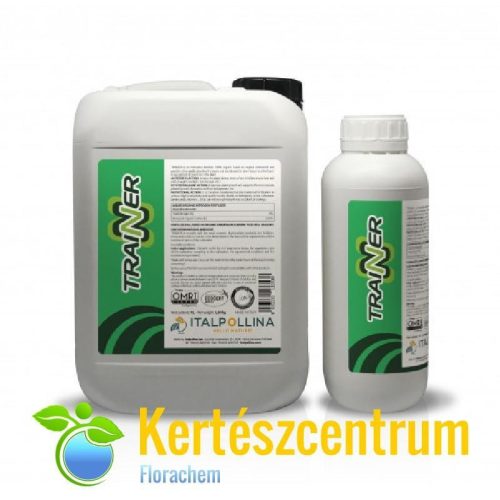 minosav- és glükózsavbázisú szerves lombtrágya, melyet 100% növényi enzimatikus hidrolízissel (sörgyártási technológia) állítanak elő. A szerves nitrogén és aminosav kombinációjának köszönhetően kezelés hatására a növény látványos és lendületes fejlődésnek indul. Az aminosav azonnal felszívódik a lombon keresztül, és a növényi szervekben néhány órán belül kifejti hatását. A szerves nitrogén és aminosav hatására a növény természetes ellenálló képessége jelentősen növekszik. Ezen alapul a TRAINER adjuvánsként történő alkalmazása, hiszen bármilyen hozzáadott szert (pl. gombaölő szer) könnyen bejuttat a növényi szövetekbe. Abiotikus stresszhelyzetre (alacsony és magas hőmérsékletek, jégverés, fagy stb.) a növény regenerálódása gyorsabb és eredményesebb. A kezeléseket minden esetben az esti vagy a hajnali órákban kell elvégezni. A TRAINER a leggyakrabban használt növényvédő szerekkel, műtrágyákkal keverhető, kivétel az olaj vagy olajbázisú rovarölő, gombaölő szerek, dodin-hatóanyagú termékek. ADAGOLÁS: (lombtrágyaként): 250-400 ml/100 l víz (3-4 alkalommal ismételve a növény vegetatív időszakában, 10-12 napos ciklusban ismételni) ÖSSZETÉTEL: Szerves nitrogén 5% Növényi eredetű aminosav 31% pH 4.4