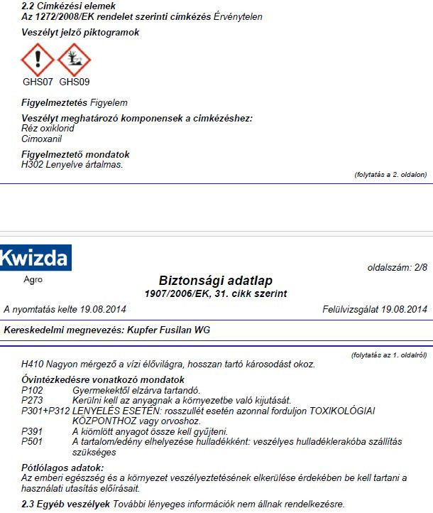 A Kupfer Fusilan® WG elsősorban a peronoszpóra, a fitoftóra és az alternáriás betegségek ellen hatékony, de magas réztartalmának köszönhetően hatása a baktériumos betegségekre is kiterjed.