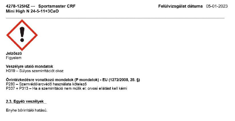 A Sportsmaster CRF 26+05+11+2MgO+me (High N) 2 - 3 hónapos hatástartamú összetett műtrágya, amely szabályozott tápanyag-leadású, burkolt és hagyományos, burkolat nélküli műtrágyaszemcsék keveréke az egyenletes fejlődés érdekében.